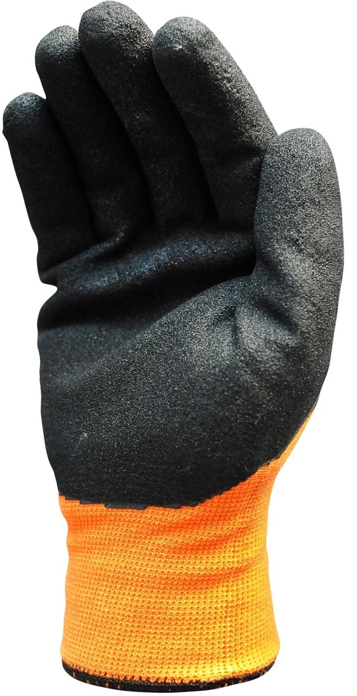 Atmungsaktives Doppelgewebe für warme Hände bei Arbeiten in der Kälte. Die 3/4-Nitrilbeschichtung schützt vor direkten Wind-, Flüssigkeits- und Kälteeinflüssen. Raues Nitrilfinish für Griffsicherheit in unterschiedlichsten Arbeitsbereichen. Weiches Innenfutter aus Acrylschlingenmaterial und Nitrilbeschichtung für Tragekomfort und Fingerbeweglichkeit. Anatomische Passform für einen perfekten Sitz und reduzierte Ermüdung der Hände. Der Kontrast zwischen der schwarzen Beschichtung und dem hellorangen Trägermaterial sorgt für gute Sichtbarkeit an Arbeitsplätzen mit unzureichender Sicht oder Beleuchtung.