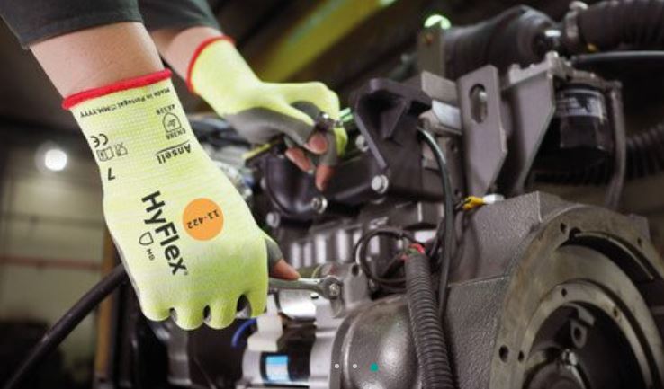 Der Hyflex 11-422 ist ein nahtloser Strickhandschuh (13-Gauge). Aus gut sichtbaren Hochleistungsfasern mit der Techcor®-Stricktechnik hergestellt. Innenhand beschichtet. Wasserbasierte, mit einem umweltfreundlichen Verfahren hergestellte, innovative Beschichtung. Silikon- und DMF-frei. Gute Abrieb- und Schnittfestigkeit. Hitzebeständigkeit bis 100° C. Dieser Handschuh ist mit einem Indikator (Orange) versehen, der Teil eines Farbcode- Systems zur Kennzeichnung der Schnittschutzstufe ist: 1 (Grün), 3 (Orange), 5 (Rot).