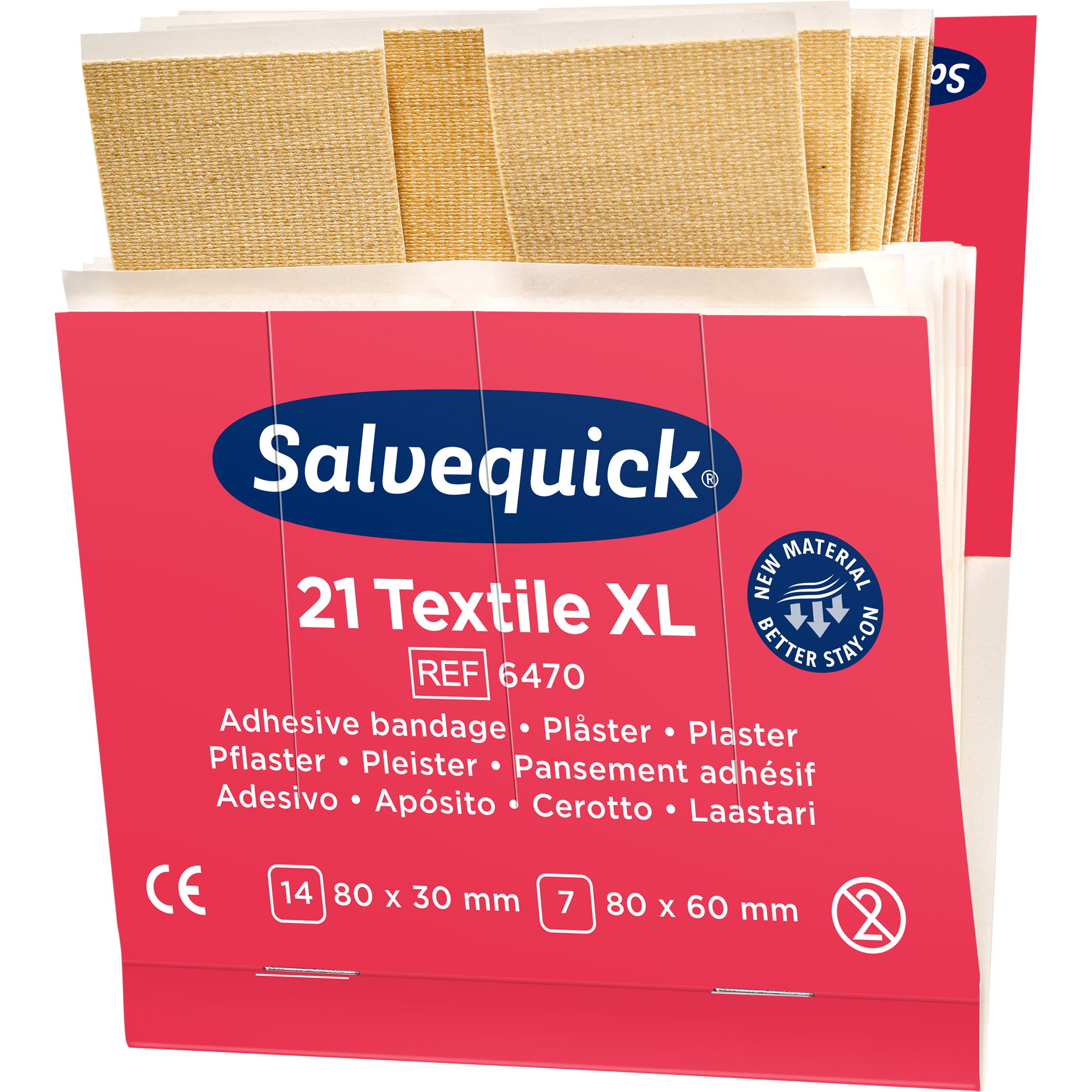 Salvequick Textilpflaster, extra groß, sind robuste, etwas größere, hochwertige Pflaster. Auf Allergien getestet. Sie lassen sich leicht aufkleben, sind flexibel und praktisch.
