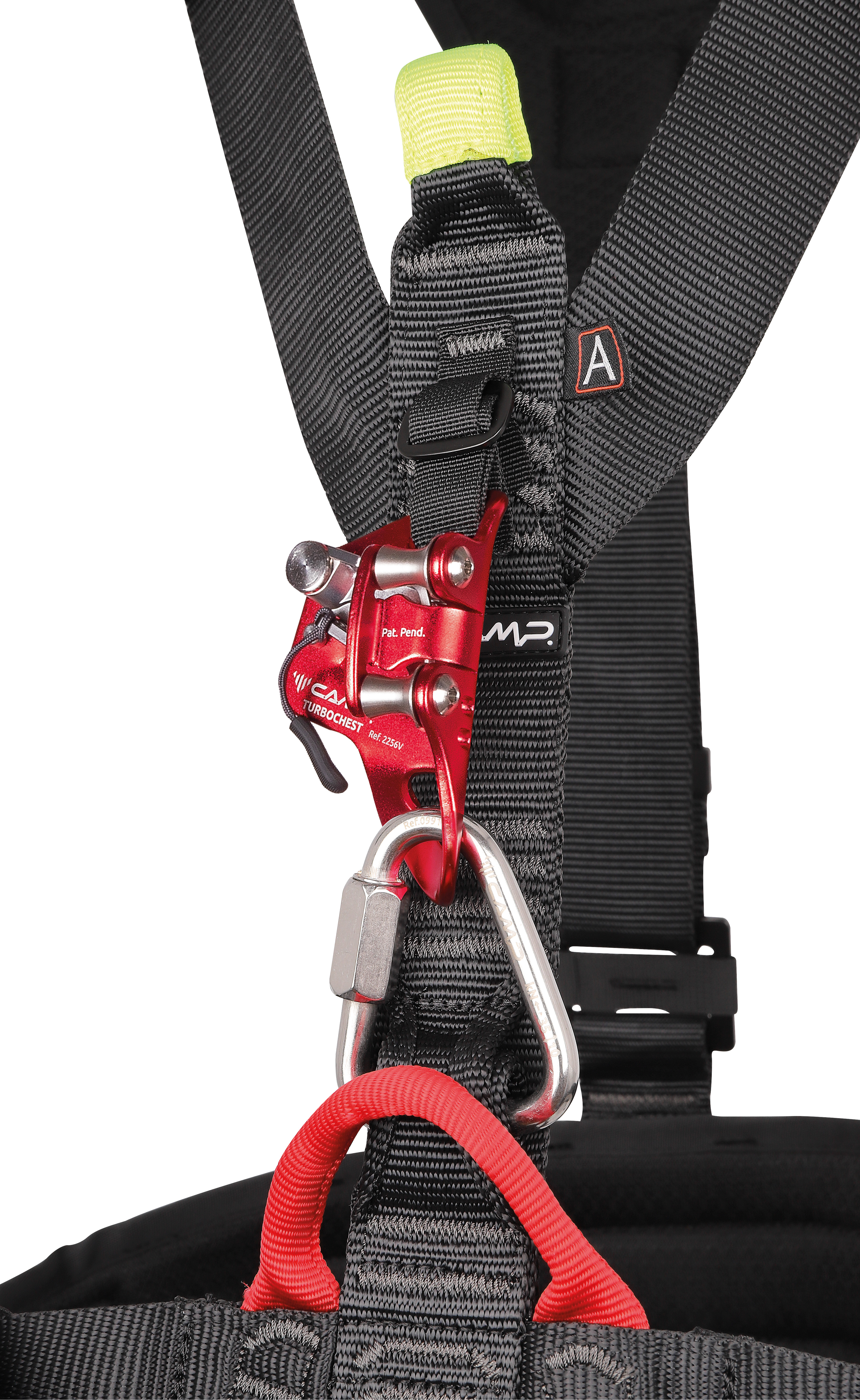 Der RSQ Flex ist ein Ultraleichtgewicht, ideal für technische Reparaturen und Reparaturen am Sitz. Die textilen Befestigungspunkte, die traditionellen Schnallen an den Beinschlaufen und die minimale Polsterung sind Teil der kompakten und wesentlichen Ausstattung. Der andere Teil der Zwickel ist so konzipiert, dass er die beste Kombination aus Hängekomfort und Bewegungsfreiheit bietet, während die Polsterung im Brustbereich für einen hervorragenden Komfort im Halsbereich sorgt. Der Bauchriemen hat eine große Öse für die Verbindung mit einem Schnellkettenglied oder einem öffenbaren Ring für das Anbringen der Bruststeigklemme Turbochest, welche über den eigenen Riemen gespannt werden kann.