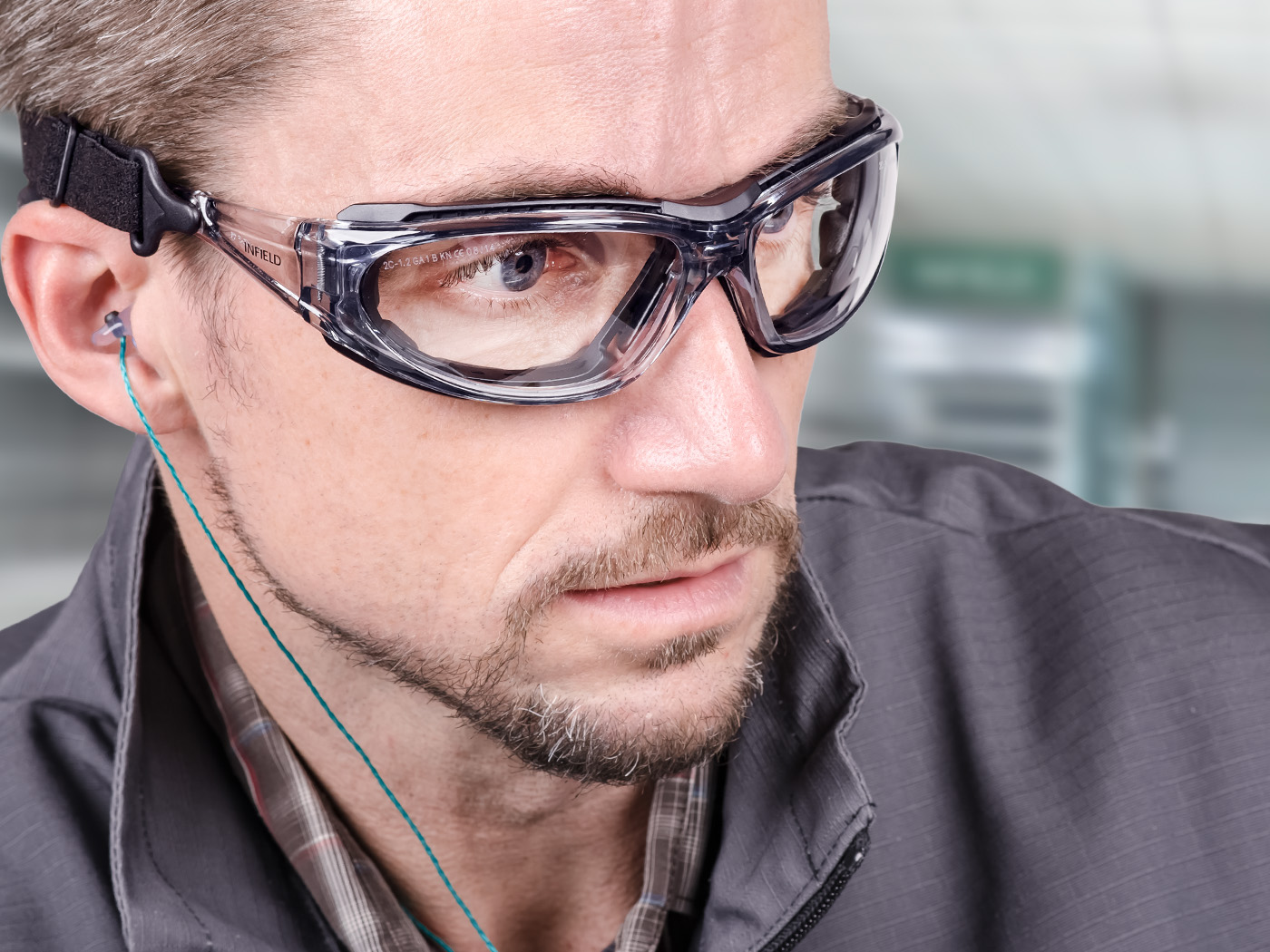 - Mit dem Kopfband als Vollsichtschutzbrille zertifiziert